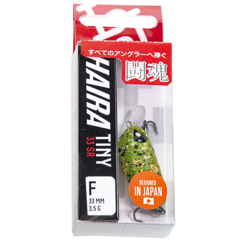 Lucky John Haira Tiny SR is a bright coloured crankbait, featuring a short, slightly barrel-shaped body with large slanted eyes. It is fitted with a small diving lip, and on a faster retrieve the working depth is typically up to 0.5 m.