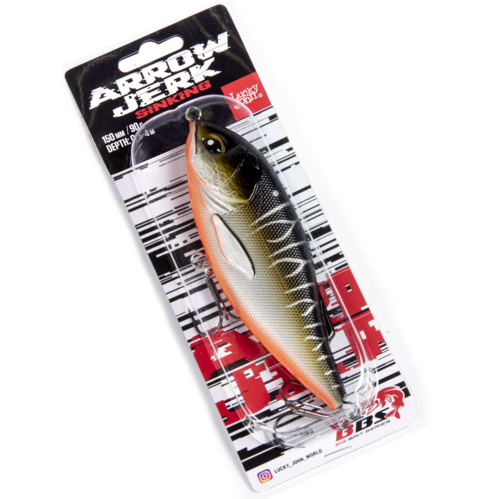 BBS ARROW JERK – a series of sinking and floating lures. Specifically designed for catching large predatory fish. The wobbler has a very distinctive game, therefore it is better to try it in shallow waters first. This will allow to choose the right leader, the strength of the jerks and the length of the pauses. BBS ARROW JERK will show its best potential on rhythmic, short jerks. The durable plastic and resistant coating will withstand pike’s teeth.