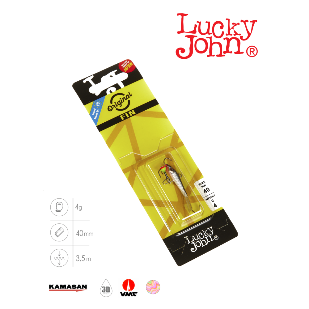 LUCKY JOHN FIN balanced lures have a flatter body in section than the CLASSIC model. Therefore the “Fins” harvest a larger underwater area. The FIN lures come in three sizes, out of which you can easily pick up a necessary size for fishing a perch, a pike or a pikeperch, as well for different levels of luminosity under water. All lures are individually packed and come completed with treble hook and coloured drops.